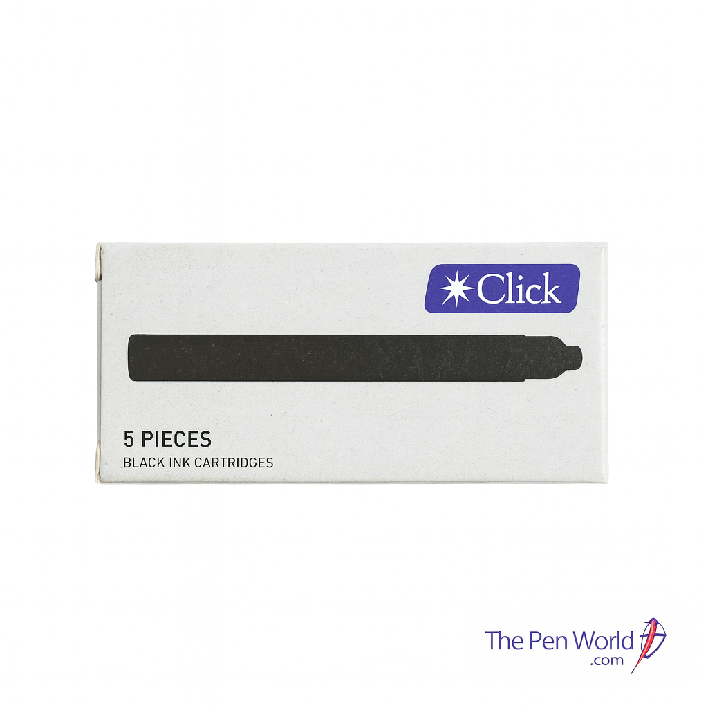 The Click Fountain Pen Ink Cartridge - Black is a reliable choice for anyone looking to add quality and convenience to their writing experience. The cartridge set includes 5 black cartridges, providing a large supply for all your writing needs. Enjoy a smooth flow with the fountain pen ink, reliable and long-lasting. Compatible with all Click 3 in 1 Fountain Pens: Aristocrat, Aristocrat HT, Century, Renaissance, Yen, Falcon